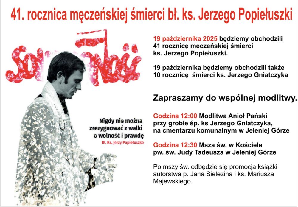 Dlatego Jelenia Góra pamięta o swoim wielkim społeczniku. W niedzielę 19 października o 12.30 w kościele na Czarnym rozpocznie się Msza Święta w jego intencji. A tuż po liturgii zostaną zaprezentowane dwie książki poświęcone temu kapłanowi.